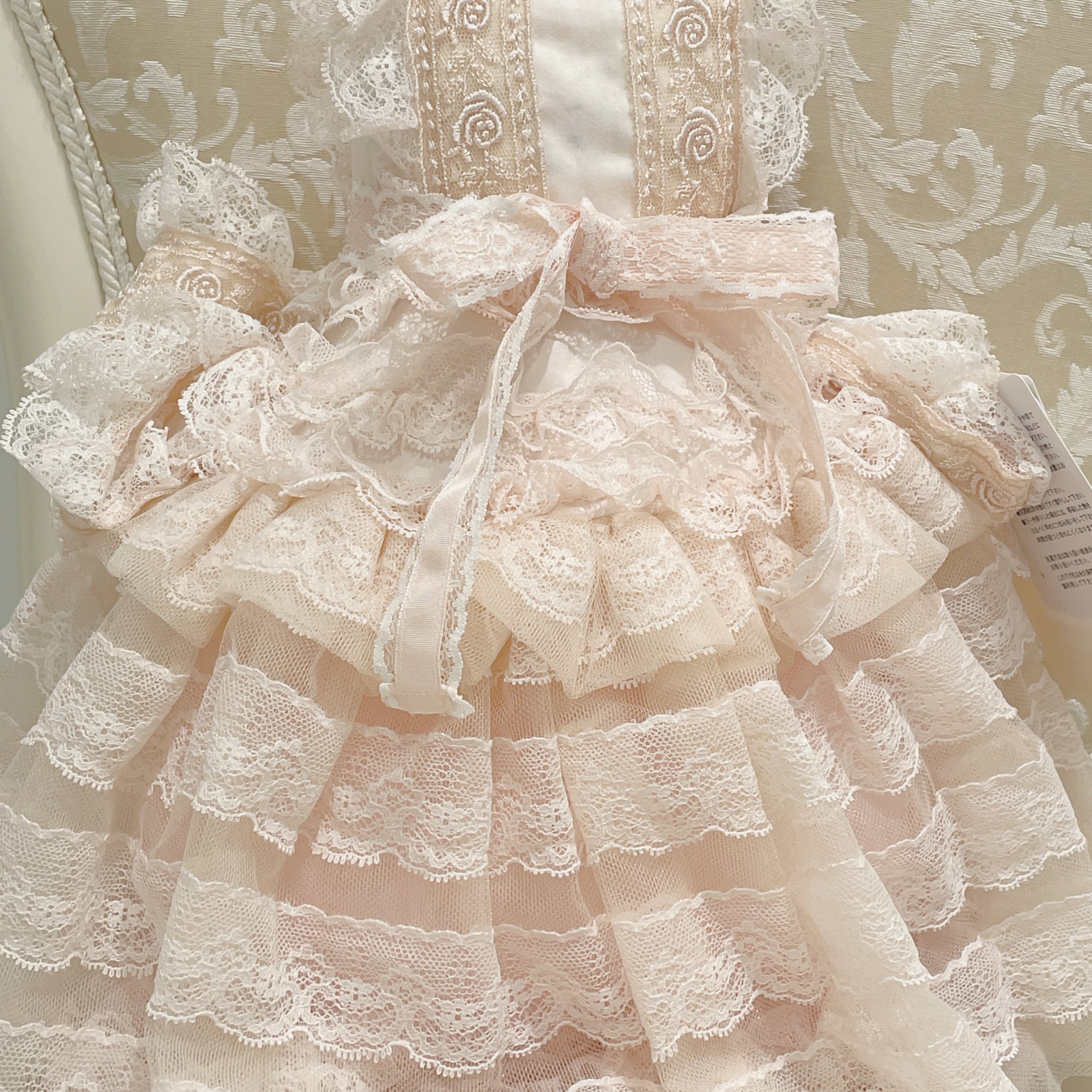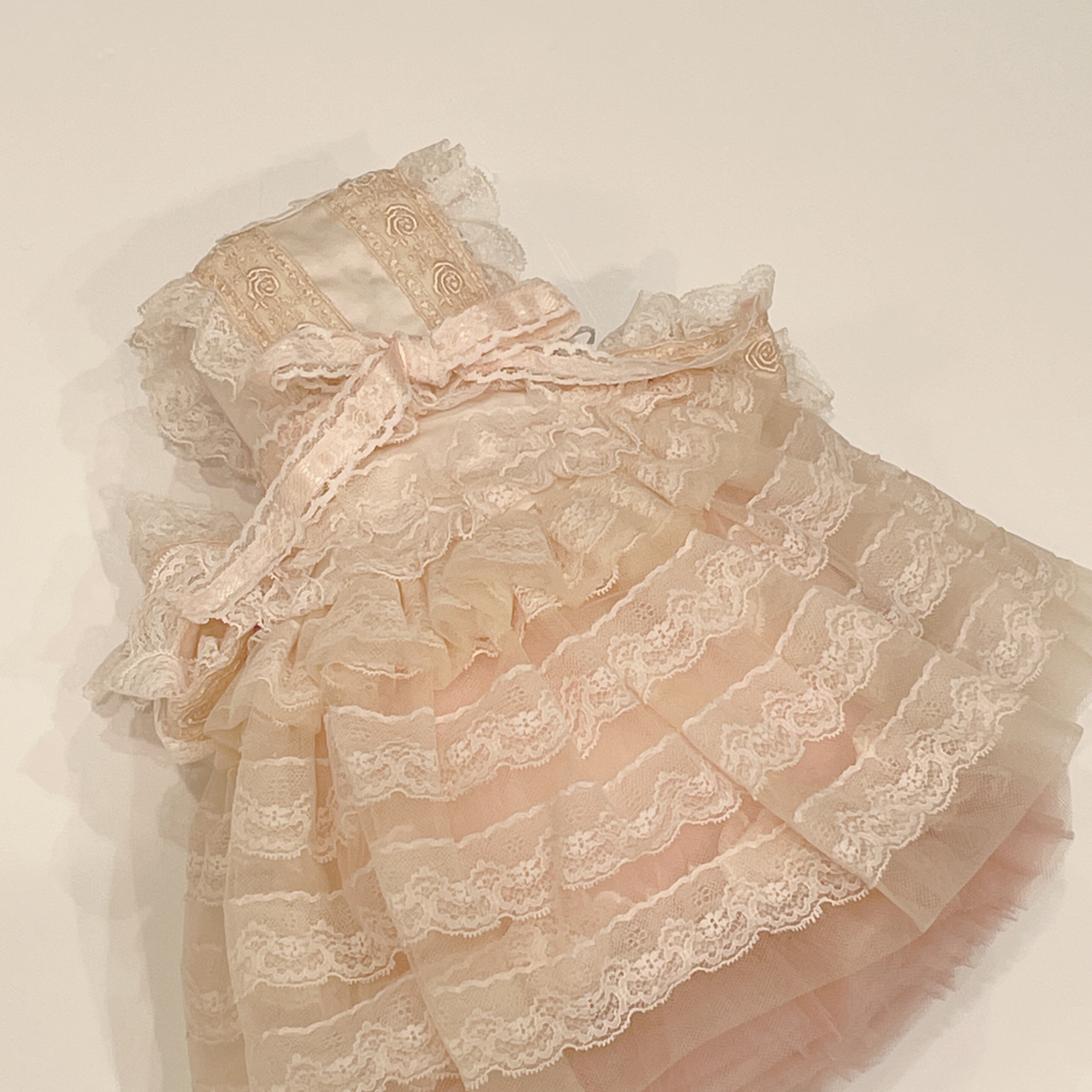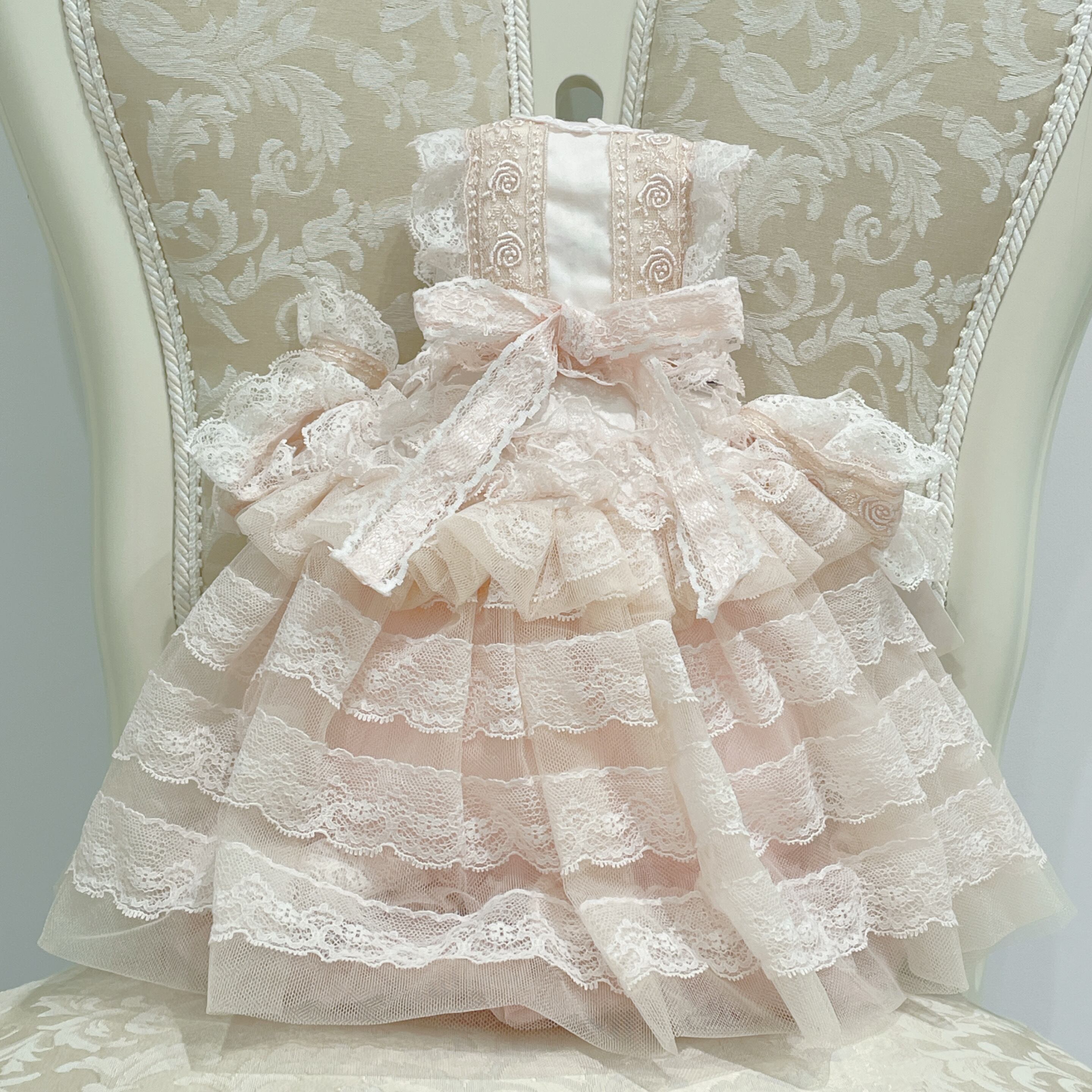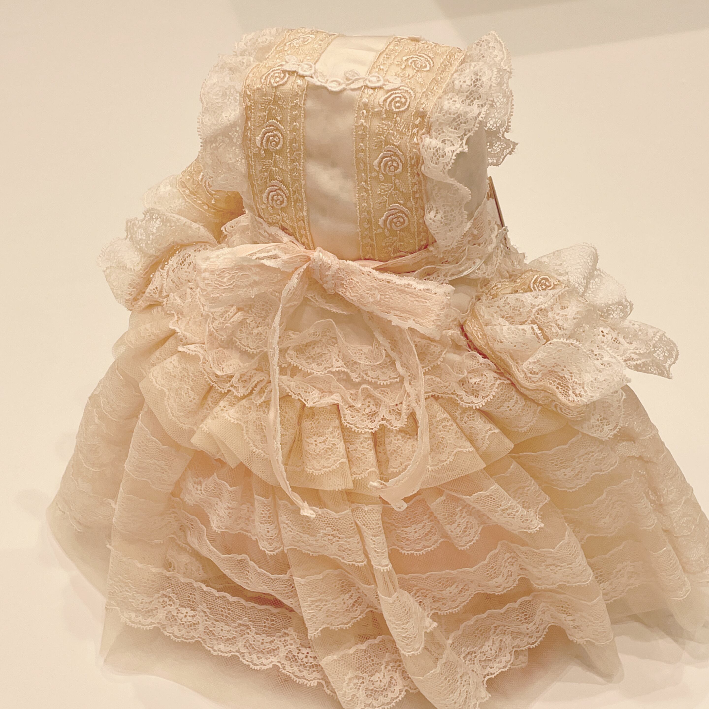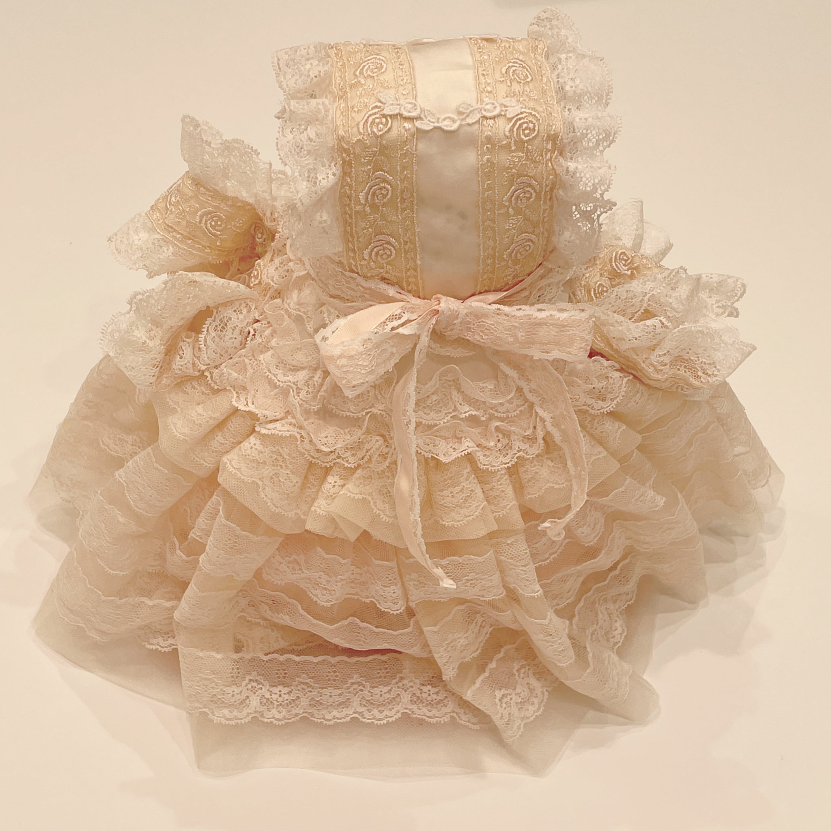 レース、チュールたっぷりのドレスをまとったクッション。