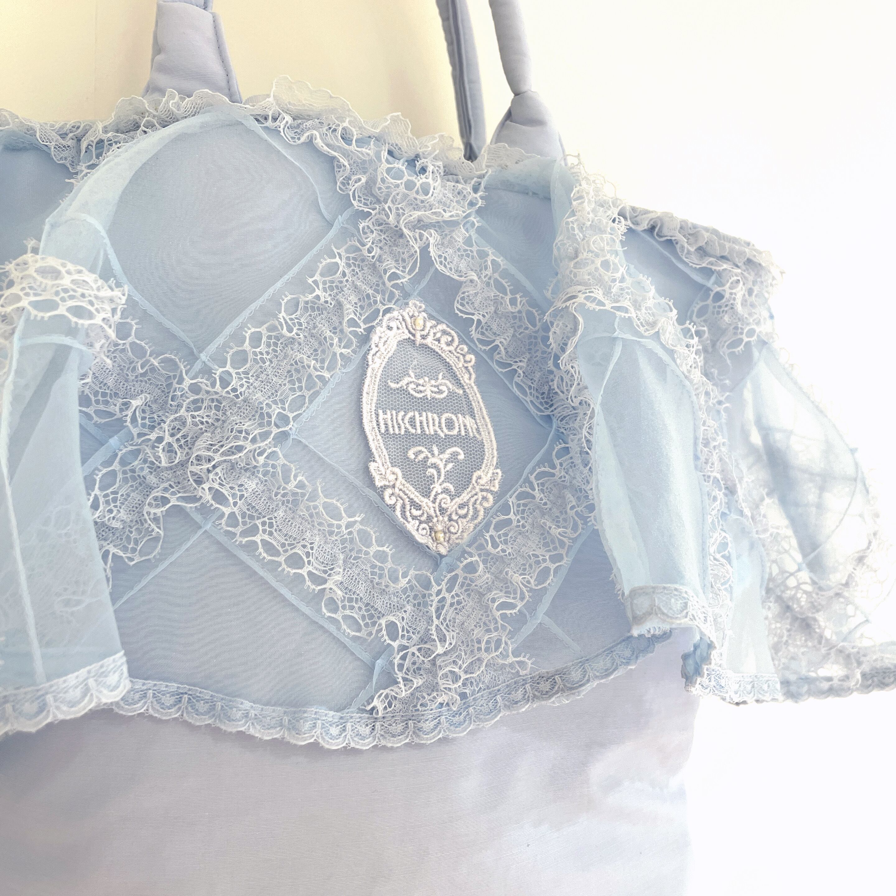 オーガンジー素材にピンタックで格子柄を施したスカートのようなフリルが特徴のバッグ。