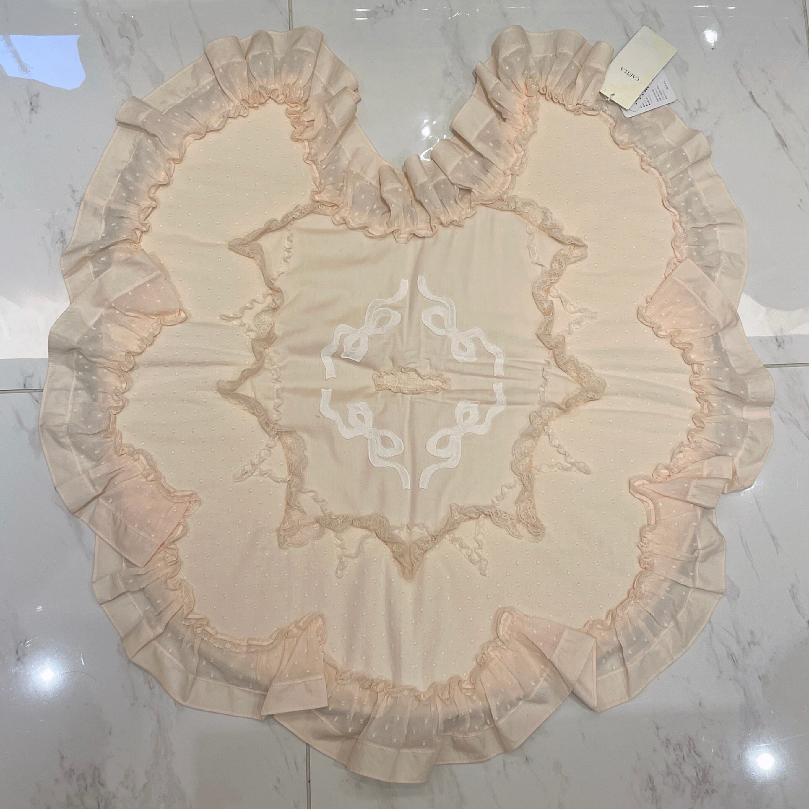 ピンクベースにレース&ホワイトリボンがついたトイレマットです。