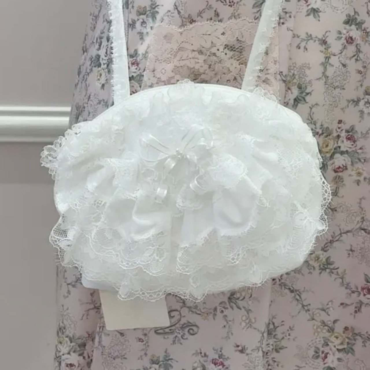 ふりふりのレース使いがかわいいポシェット。